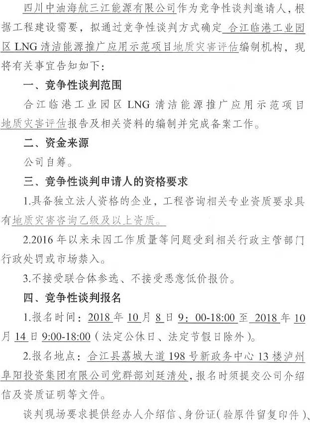 合江臨港工業(yè)園區(qū)LNG清潔能源推廣應用示范項目地質(zhì)災害評估單位競爭性談判公告.docx